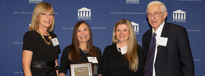 (L-R): Linda J. Kostin, member of the NYSBA Committee on Children and the Law, Michele A. Brown, Lorraine R. Silverman, chair of the NYSBA Committee on Children and the Law, and the Hon. Howard A. Levine. (Photo by Marty Kerins)